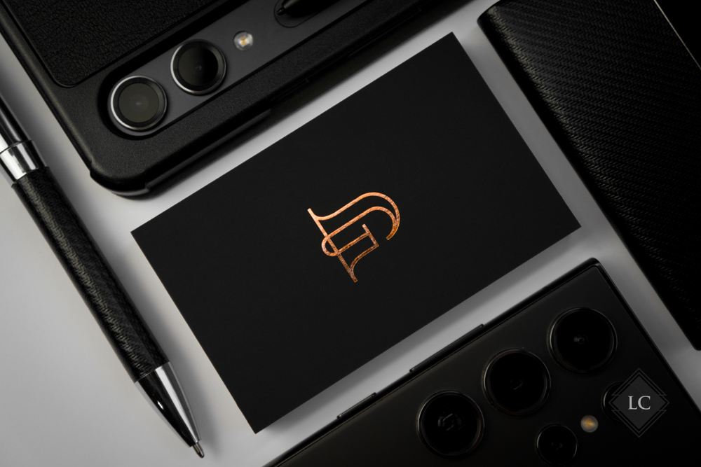 Carti vizita luxury – folio cupru pe negru