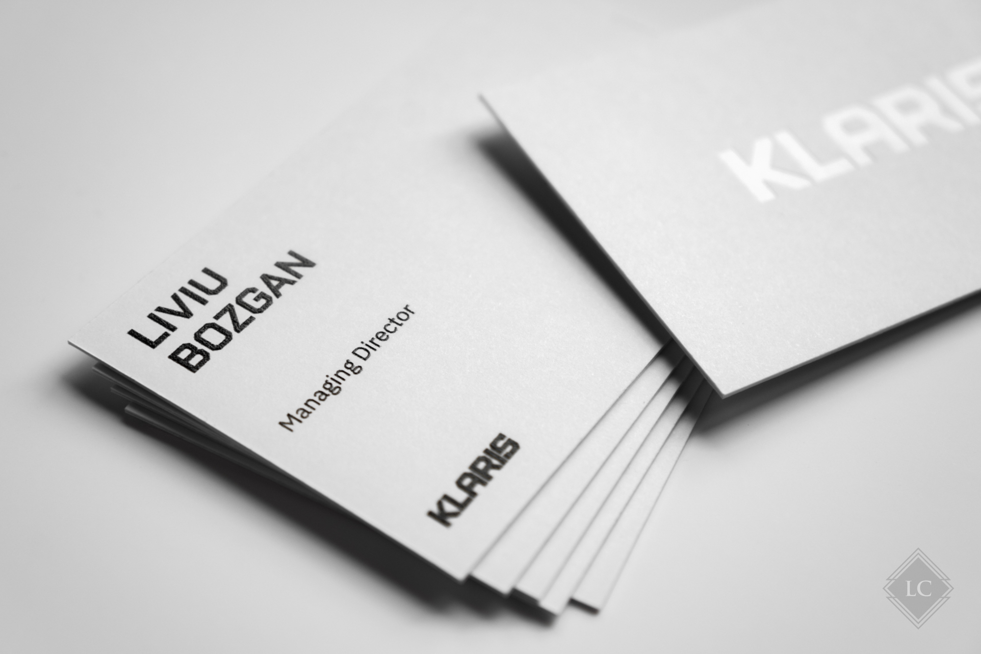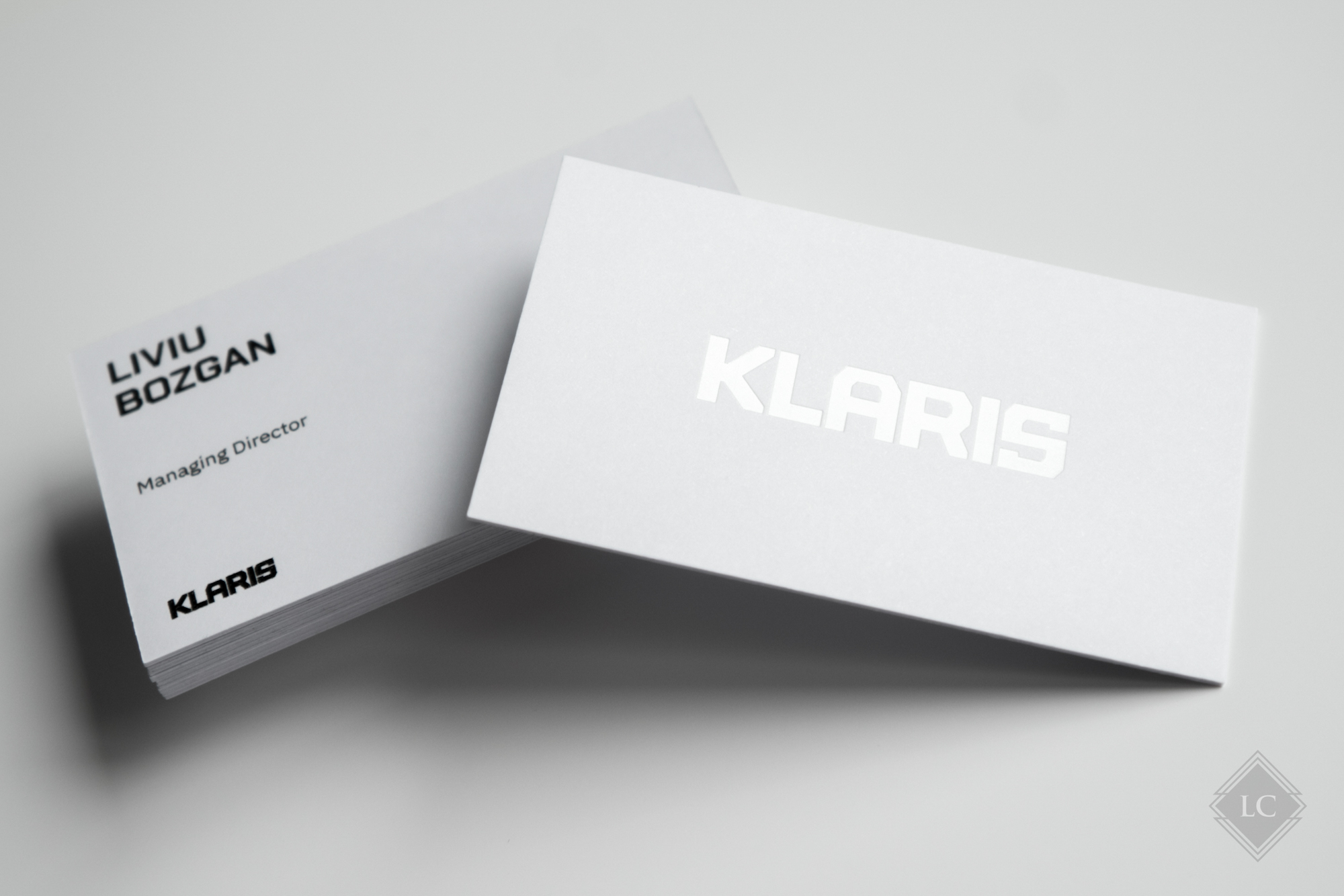 Aceste carti de vizita sunt realizate pe un carton multistrat alb (Super White) si impresioneaza printr-un design modern, curat si echilibrat.
