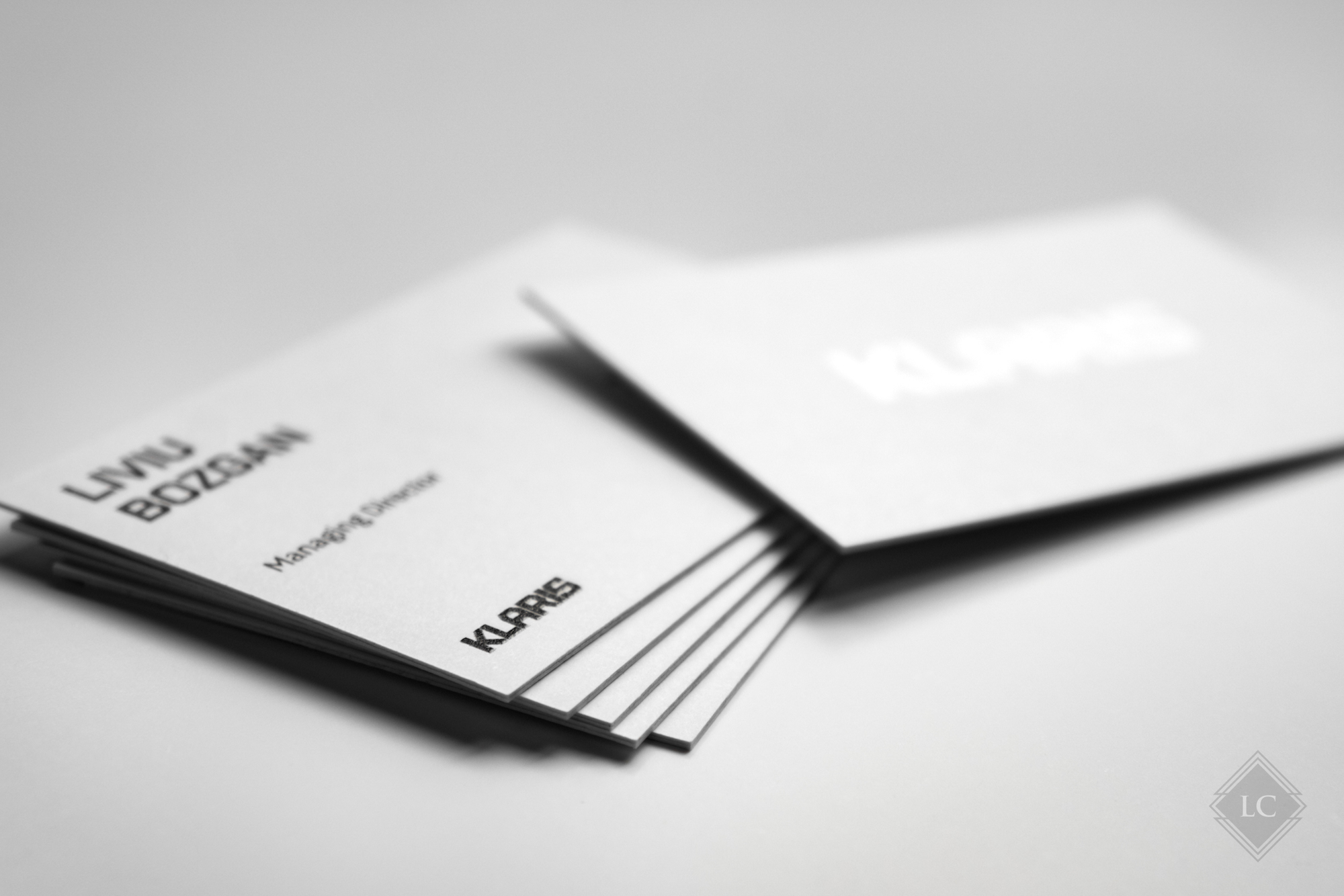 Carti vizita director – carton Super White, print UV in relief, letterpress si folio transparent